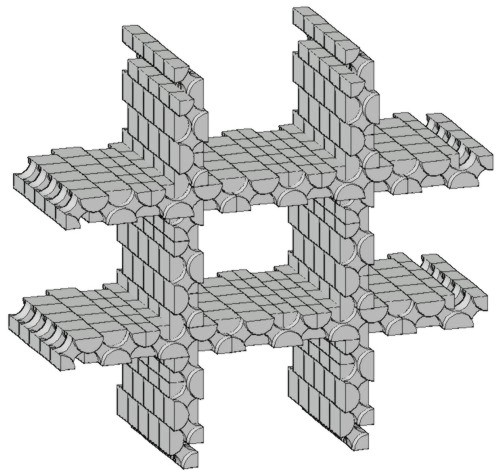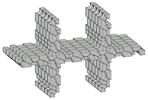 faces inclinadas em blocos da primeira forma mais facetada, parede montada e vista por baixo de bloco com alívio de massa