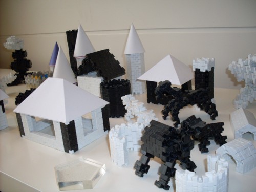 abaixo na parte superior peças com aspecto maciço e na parte inferior peças com